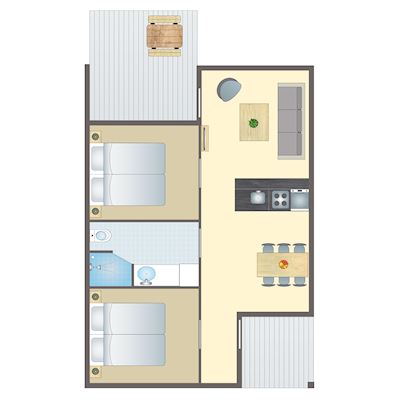 Nydelig komfort feriehus med egen delvis overbygd terrasse, hvor det er god plass til at dere alle kan nyte ferien sammen. Boligen har også et flott kjøkken-spisestue med god plass og deilige møbler. Det er 2 flotte soverom med 2 senger hver, samt en koselig hems med plass til 2 personer. Da ferieboligene er privateiet, kan beskrivelsene, bildene, spesifikasjonene og planløsningene for boligene variere.